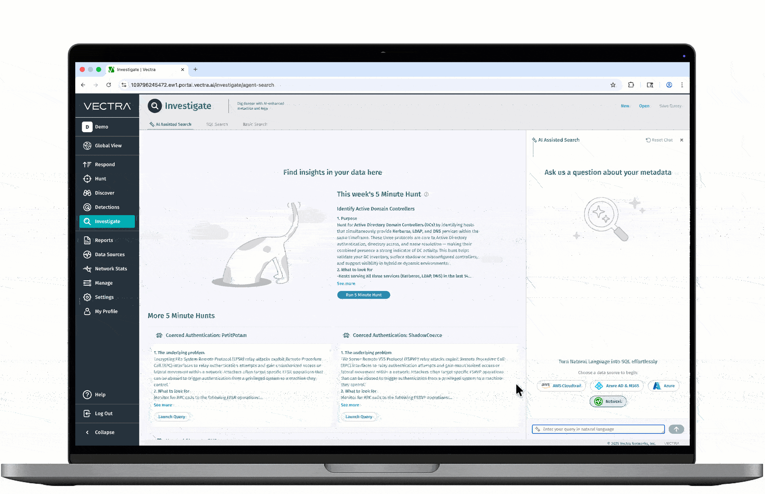 Noussommes ravis de vous annoncer que les chasses de cinq minutes sont désormais disponibles dans Advanced Investigations. Ces chasses guidées font remonter à la surface des informations significatives dans les métadonnées sans que les clients aient à maîtriser le langage SQL ou une terminologie spécialisée. Les équipes de sécurité peuvent rapidement découvrir les schémas des attaquants, démontrer une valeur proactive en temps de paix et augmenter l'efficacité en quelques clics. En coulisses, la fonction est alimentée par notre cadre flexible de diffusion de contenu, avec des mises en page adaptatives, des animations fluides et des visuels attrayants pour une expérience d'analyse transparente.